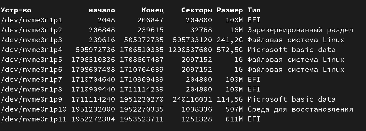 fdisk -l Найдите необходимое блочное устройство в выводе команды (например, /dev/nvme0n1p3) и запомните его путь. 4. Монтируйте это устройство как корневой раздел для вашей системы: mount /dev/ваше_блочное_устройство /mnt Для вашего случая команда будет такой: mount /dev/nvme0n1p3 /mnt 5. Создайте символьные ссылки, чтобы монтировать другие необходимые разделы (если они у вас есть): mkdir -p /mnt/{boot,home,tmp}