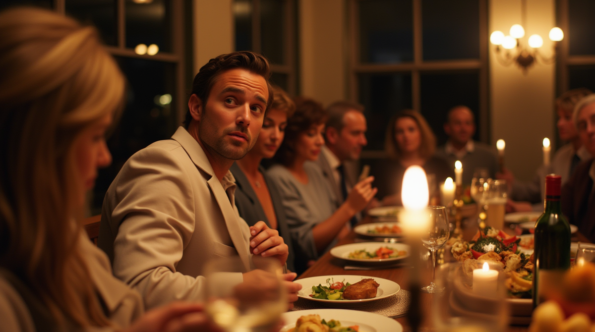 И вдруг — тишина. Такая оглушительная, что звон в ушах стоит. Гости застыли с вилками в руках. Никто не жуёт, не пьёт, не дышит почти.