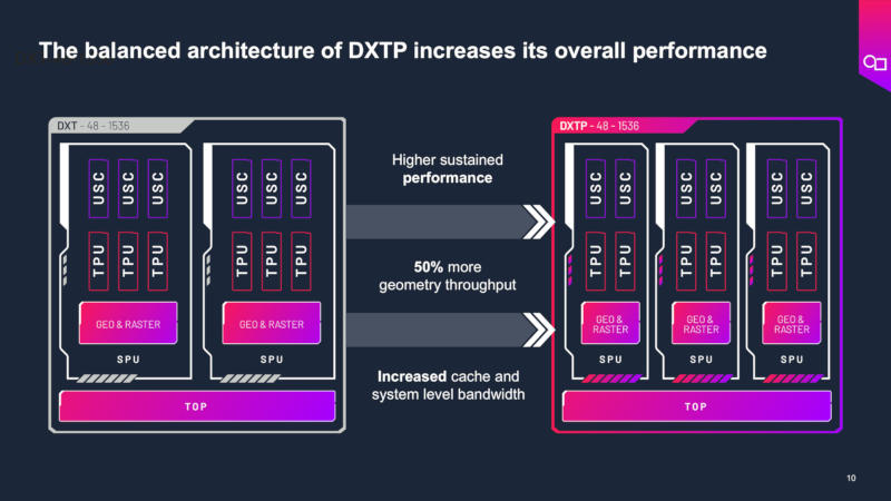 Компания Imagination Technologies представила графический процессор под названием DXTP, созданный для обработки графики и вычислений общего назначения на устройствах с низким энергопотреблением, включая смартфоны. DXTP, благодаря продвинутым решениям на уровне микроархитектуры, обеспечивает в среднем 20% прирост энергоэффективности — измеряемой в кадрах в секунду на ватт — в самых распространённых сценариях применения по сравнению с действующими моделями DXT. По утверждениям Imagination, их разработки популярны на разнообразных рынках, от мобильной электроники до беспилотных автомобилей. В минувшем году компания освоила технологию аппаратного ускорения трассировки лучей, ранее доступную лишь передовым видеокартам для ПК и игровым приставкам, но теперь активно внедряющуюся в мобильные решения. Вычислительный движок DXTP предлагается в двух версиях: для мобильных девайсов и автомобилей. Он способен обрабатывать до 64 гигапикселей в секунду, достигая производительности 2 Тфлопс при FP32 в