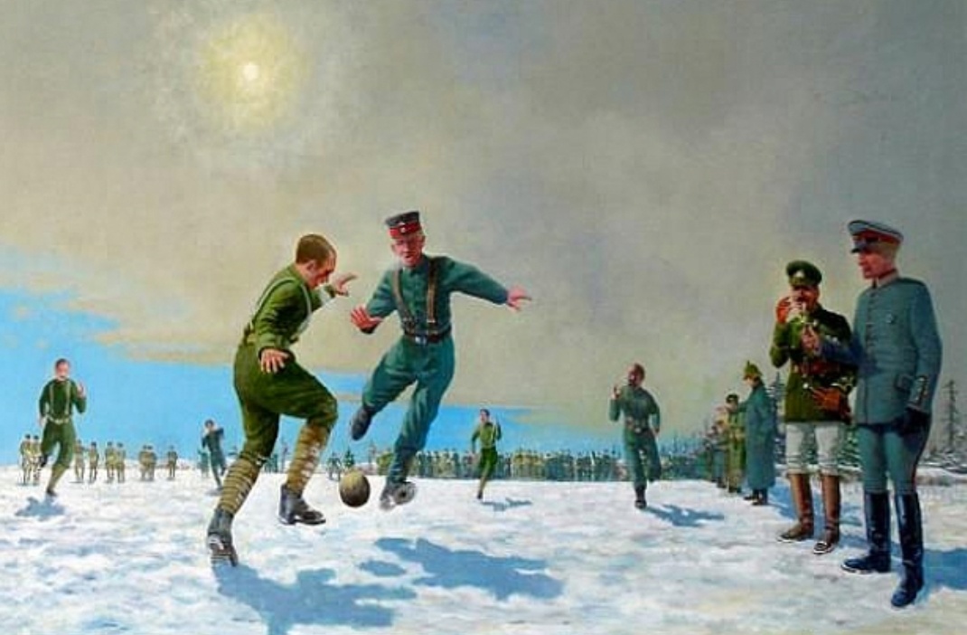 Зима 1914 года. Первая мировая война в самом разгаре. Окопы, грязь, холод и бесконечные обстрелы. Солдаты с обеих сторон — немцы, французы, британцы — уже несколько месяцев живут в адских условиях. Но в канун Рождества происходит нечто невероятное, что навсегда останется в истории как "Рождественское перемирие". Как это началось? 24 декабря 1914 года на Западном фронте, где враждующие стороны находились буквально в сотне метров друг от друга, немецкие солдаты начали украшать свои окопы свечами и рождественскими ёлками. Они запели рождественские гимны, и их голоса разнеслись над нейтральной полосой. Британские и французские солдаты, услышав знакомые мелодии, начали подпевать. Футбол вместо стрельбы На следующее утро, 25 декабря, солдаты с обеих сторон начали осторожно выходить из окопов. Они обменивались подарками: немцы предлагали колбасу и шоколад, британцы — консервы и сигареты. Но самое удивительное произошло позже. Кто-то достал футбольный мяч, и начался импровизированный мат