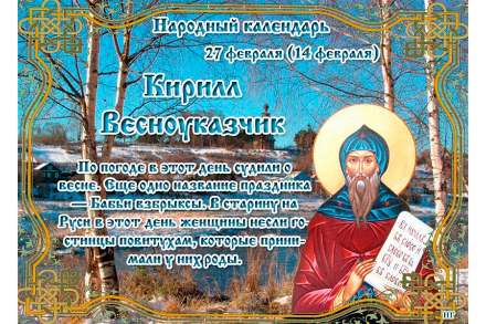 В четверг 27 февраля 2025 года Православная церковь чтит память святого Кирилла (в миру Константина), получившего прозвище философ. Появился он на свет в 827 году в Салониках. Вместе с братом Мефодием перевёл Евангелия с греческого на древнеславянский язык.