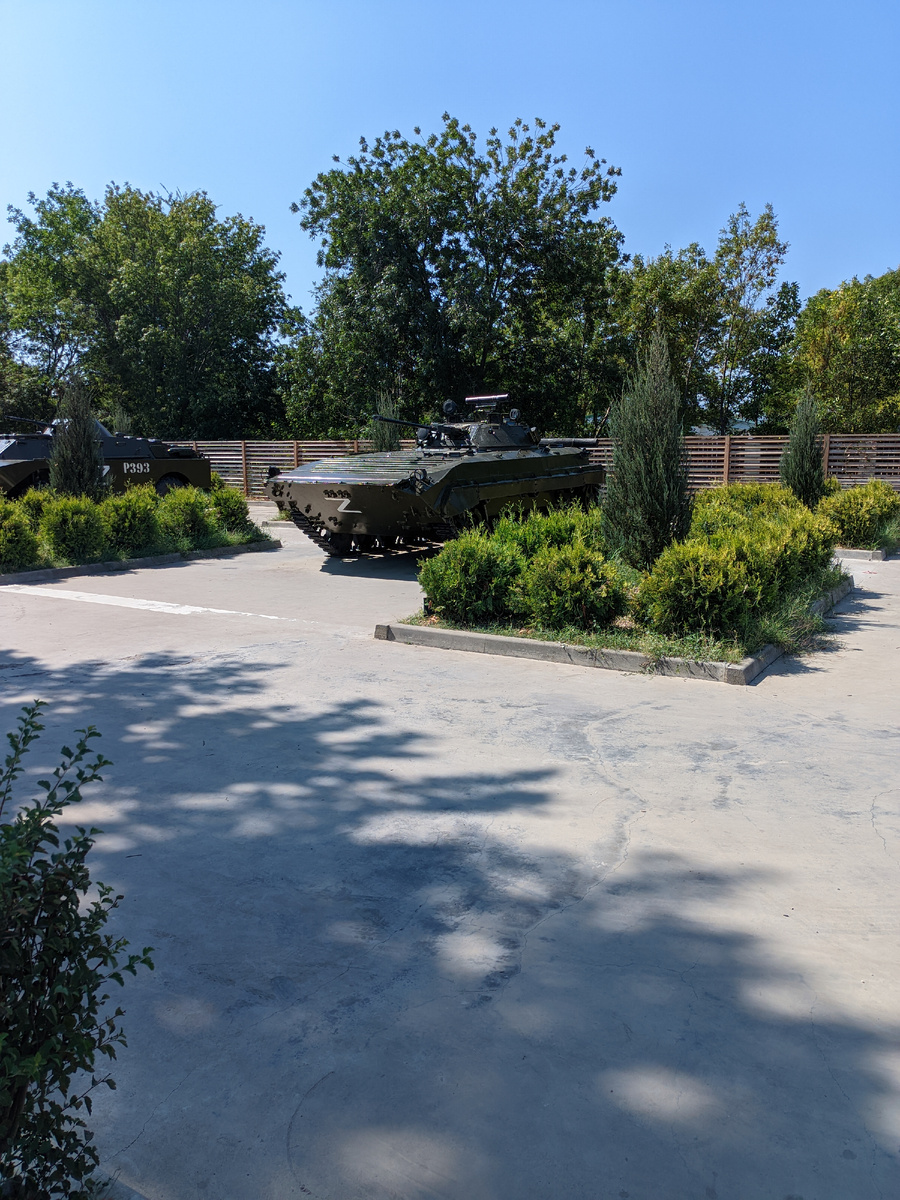 Анапа всем известный на просторах бывшего СССР курорт. К сожалению, в этом году курорт постигла катастрофа, связанная с разливом мазута. Что будет нынешним летом с сезоном в Анапе судить не берусь, но, хочется надеяться, что пляжи и прибрежные воды будут полностью очищены от загрязнений. Анапа меньше всего ассоциируется с чем-то военным, но тем не менее в городе есть музей военной техники под названием "Сквер военной техники". Открылся он в сентябре 2018 года к 75-летию освобождения Анапы от немецко-фашистских захватчиков. Расположен музей под открытым небом на пересечении Симферопольского шоссе и улицы Кольцевой, посещение абсолютно бесплатное. Буквально в четырёхстах метрах от сквера-музея на Пионерском проспекте находится дельфинарий, а напротив, за кольцевой развязкой Чембурское озеро. Если подходить со стороны улицы Кольцевой, то первой посетителей встречает боевая машина пехоты БМП-2. Производилась с 1980 г. по 2008 г. Экипаж 3 человека, а так же на борту могут разместится 7 чело