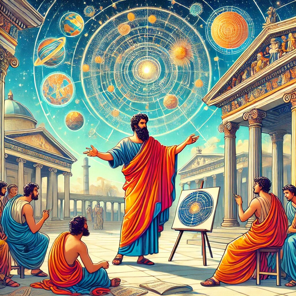 Гераклид Понтийский (около 390–310 до н. э.) — древнегреческий философ, ученик Платона и один из выдающихся мыслителей своего времени. Он известен своими трудами по натурфилософии, астрономии, этике и риторике, а также своими необычными гипотезами о строении Вселенной. Гераклид родился в Гераклее Понтийской (современная Турция) и обучался в Академии Платона. После смерти учителя он продолжил развивать философские идеи, синтезируя их с пифагореизмом и другими направлениями. В области метафизики Гераклид придерживался концепции дуализма, утверждая, что существует как материальный, так и духовный аспекты бытия. Он также исследовал вопросы души, времени и движения, подчеркивая их сложную природу. Он считал, что душа бессмертна и способна перевоплощаться, а также подчеркивал роль числовых закономерностей в устройстве мира. Гераклид разделял идеи Платона о высших формах бытия, но также внедрял элементы пифагореизма, такие как вера в математическую гармонию Вселенной. В его представлениях о