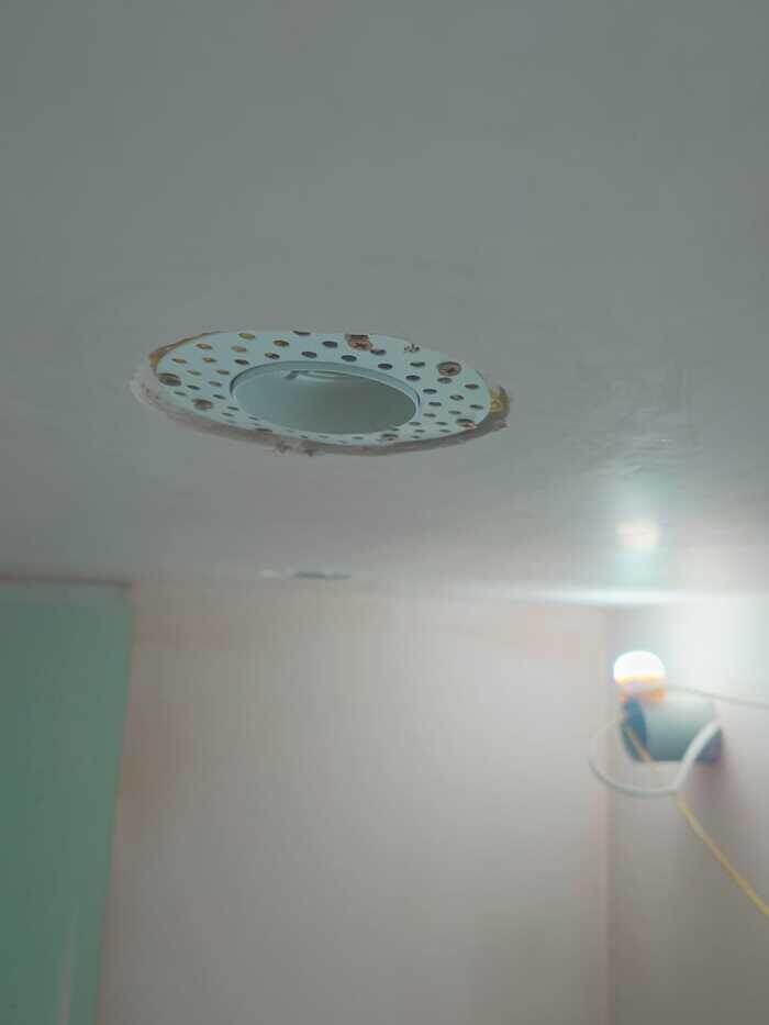 32 Встроенных в гипсокартон светильника, электрики установили согласно архитектурному чертежу проекта. Светильники встроенные в гипсокартон должны быть установлены в два захода. Сначала электрики устанавливают основную часть потолочного светильника, который выглядит вот так. После того как всё жалуется, электрики должны закончить свою работу, и установить оставшуюся часть светильников. В принципе, вся эта работа обычная рубина любого строительного проекта, но как обычно есть нюансы. Электрики после установки внутренней части светильника закинули крышки в черный мусорный пакет, аккуратно отложили его в сторону свалили со стройки. Наш разнорабочий не проверив содержание мусорного пакета выбросил его в общую кучу строительного мусора. По пятницам мы вызываем машину, и вывозим мусор со стройки. Собственно часть тридцати двух встроенных светильника благополучно уехала на мусорку. Обзвонили все магазины, более того позвонили производителю, но они не продают эту часть светильников. Предлагают