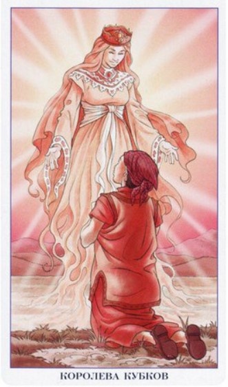 Для расклада на вторник беру колоду "Таро 78 Дверей", так как в этот день в 1930 году в Москве был открыт Клуб театральных работников (сейчас он называется Центральным домом работников искусств). Вытаскиваю младший аркан - "Королева Кубков". Аркан "Королева Кубков". "Таро 78 Дверей". Королева Кубков не особо часто появлялась на раскладе (ссылка на расклад - в конце статьи). В толковнике к колоде (МБК) указана следующая трактовка: Щедрая женщина, нежная, обладающая большим чувством жертвенности. Душевное богатство. Желаю удачного дня!