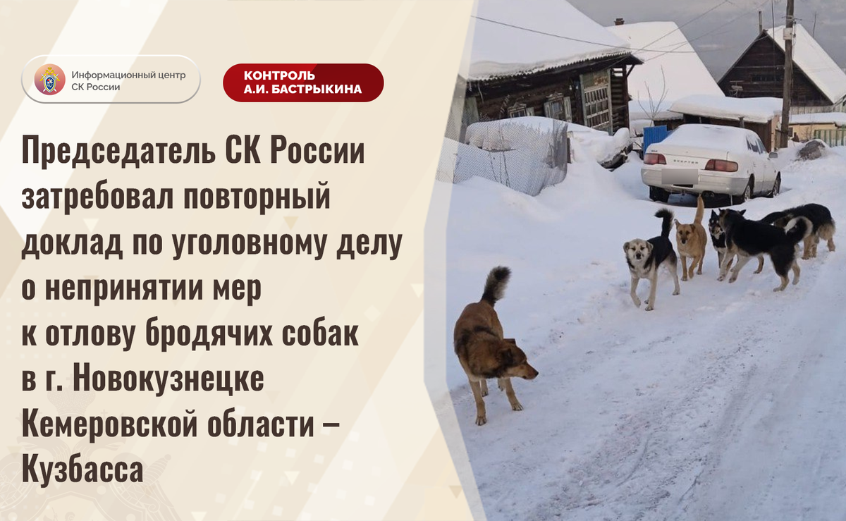 Председатель СК России затребовал повторный доклад по уголовному делу о непринятии мер к отлову бродячих собак в г. Новокузнецке Кемеровской области – Кузбасса В приемную Председателя СК России А.И. Бастрыкина «ВКонтакте» обратилась жительница города Новокузнецка Кемеровской области – Кузбасса по вопросу непринятия мер к организации отлова бродячих собак в Куйбышевском районе. На территории нескольких улиц, в том числе вблизи детских образовательных учреждений, обитает более 25 крупных агрессивных животных, которые пугают местных жителей. В 2023 и 2024 гг. безнадзорные собаки нападали на ребенка и мужчину, однако каких-либо мер принято не было. Несмотря на многочисленные обращения в органы власти, проблема не разрешена. В СУ СК России по Кемеровской области – Кузбассу по поступившему обращению начата процессуальная проверка, материалы которой приобщены к ранее возбужденному уголовному делу, поставленному А.И. Бастрыкиным на контроль в центральном аппарате ведомства. Председатель Следс