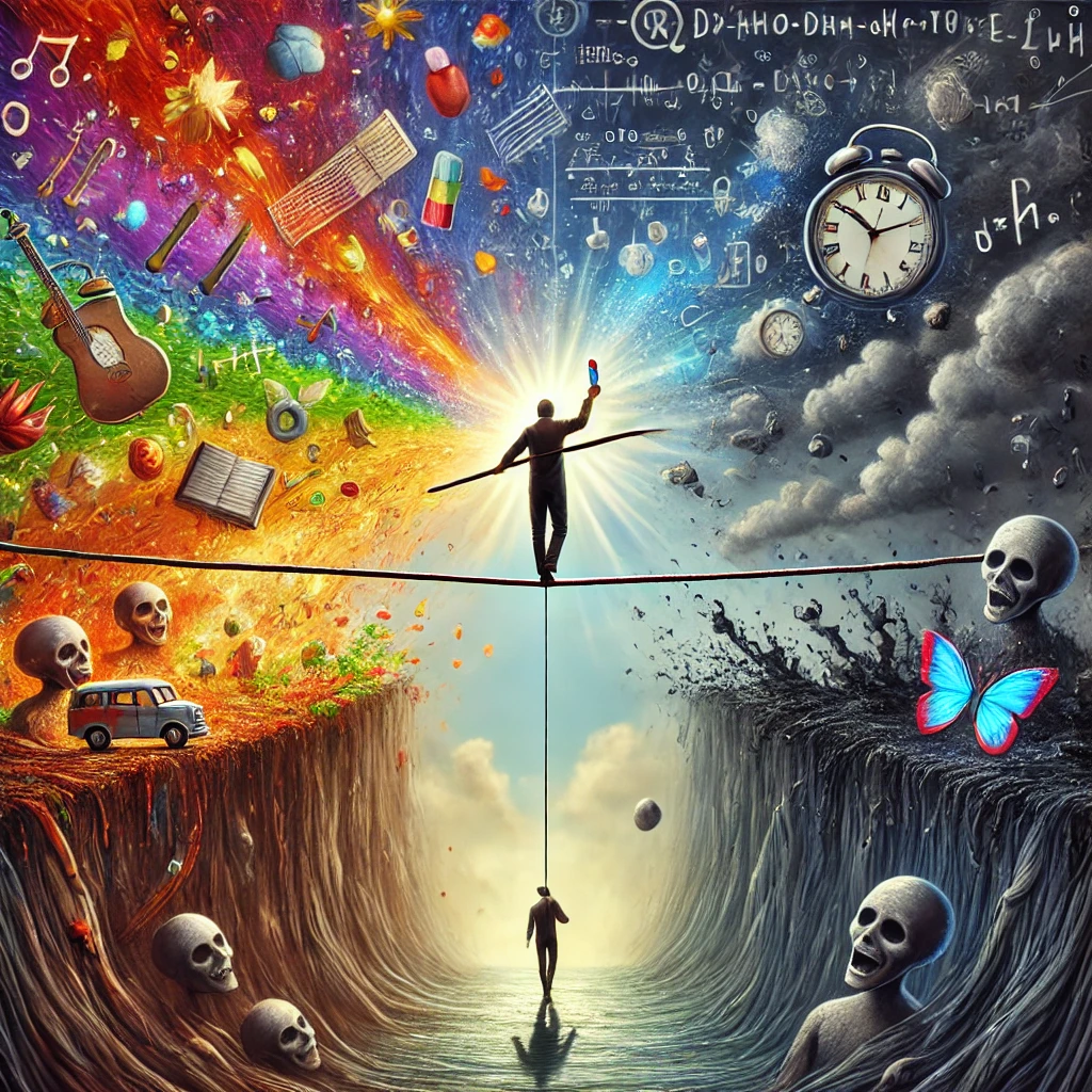Биполярное расстройство, парадокс, обречённость метаться между крайностями собственной души. В мании приходит ощущение всемогущества, вдохновения, невероятной лёгкости, когда мысли сменяют друг друга с бешеной скоростью, а мир кажется бесконечным. Внутренний свет наполняет всё вокруг, но эта эйфория обманчива и мимолётна. За ней неизбежно следует обратная сторона, тяжёлая депрессия, полное истощение, провал в бездну отчаяния, где любое движение теряет смысл, а жизнь становится бесцветной и лишённой надежды.