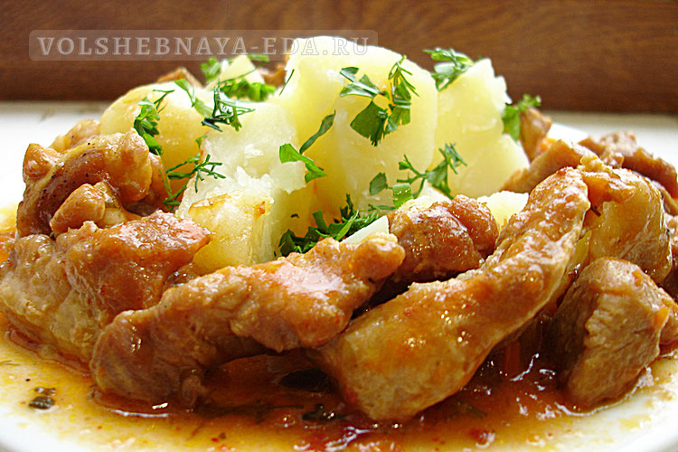 Почищенный и нарезанный тонкими кружочками имбирь положите в разогретую с небольшим количеством растительного масла сковороду. Поджарьте до красивого цвета. Вытащите и отложите в сторонку, имбирь ещё пригодится. В сковороду с ароматным маслом выложите свинину. Жарьте на большом огне, пока не выпарится жидкость, а потом еще минут 5-7, чтобы кусочки чуть поджарились. Поджарка все-таки! Однако постарайтесь соблюсти нужную меру, не держите больше указанного времени. Если вы взяли для поджарки постную свинину, то положите в сковороду сливочное масло. Если же свинина с жирком, который уже успел вытопиться, то масло будет лишним. Посыпьте мясо мукой (мука - один из ингредиентов многих соусов к мясу) и перемешайте
