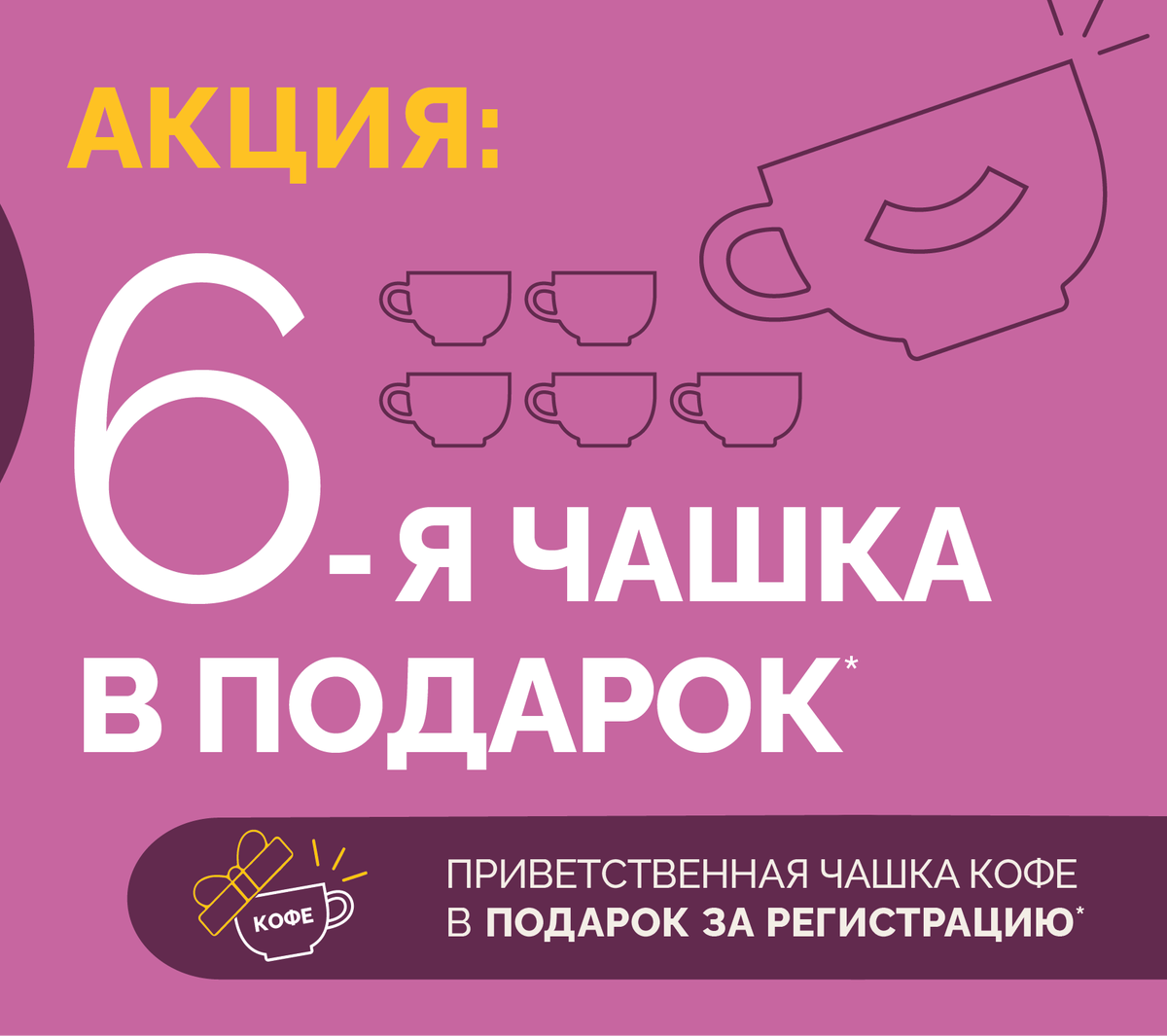 Активно используются акции “6 чашка кофе в подарок” и “10 ланч в подарок”