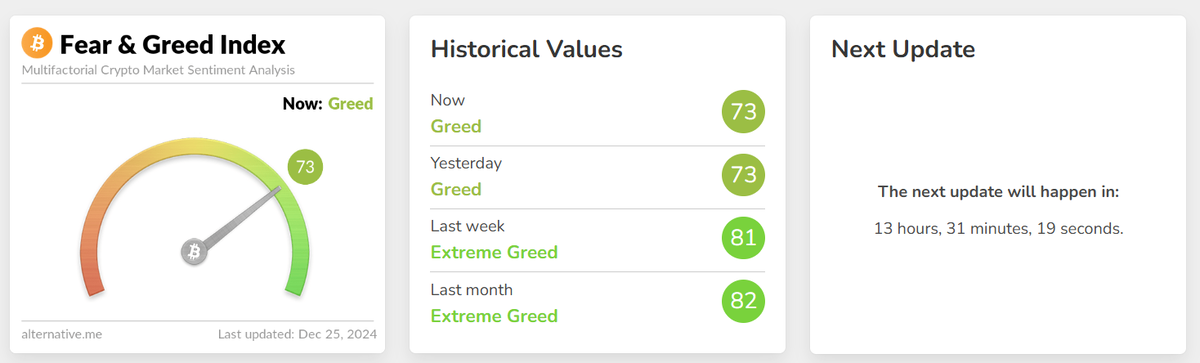 Индекс жадности и страха по состоянию на 25 декабря. Источник: Alternative.me