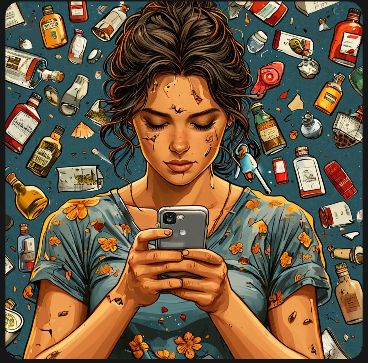 — Цифровая игла. Среднестатистический человек проверяет телефон 150 раз в день. Каждый лайк — микро-доза одобрения, без которого мы чувствуем себя ненужными. Это как если бы мы были наркоманами лайков, и каждый день нужно было «дозировать» себя, чтобы не чувствовать себя полным нулем.