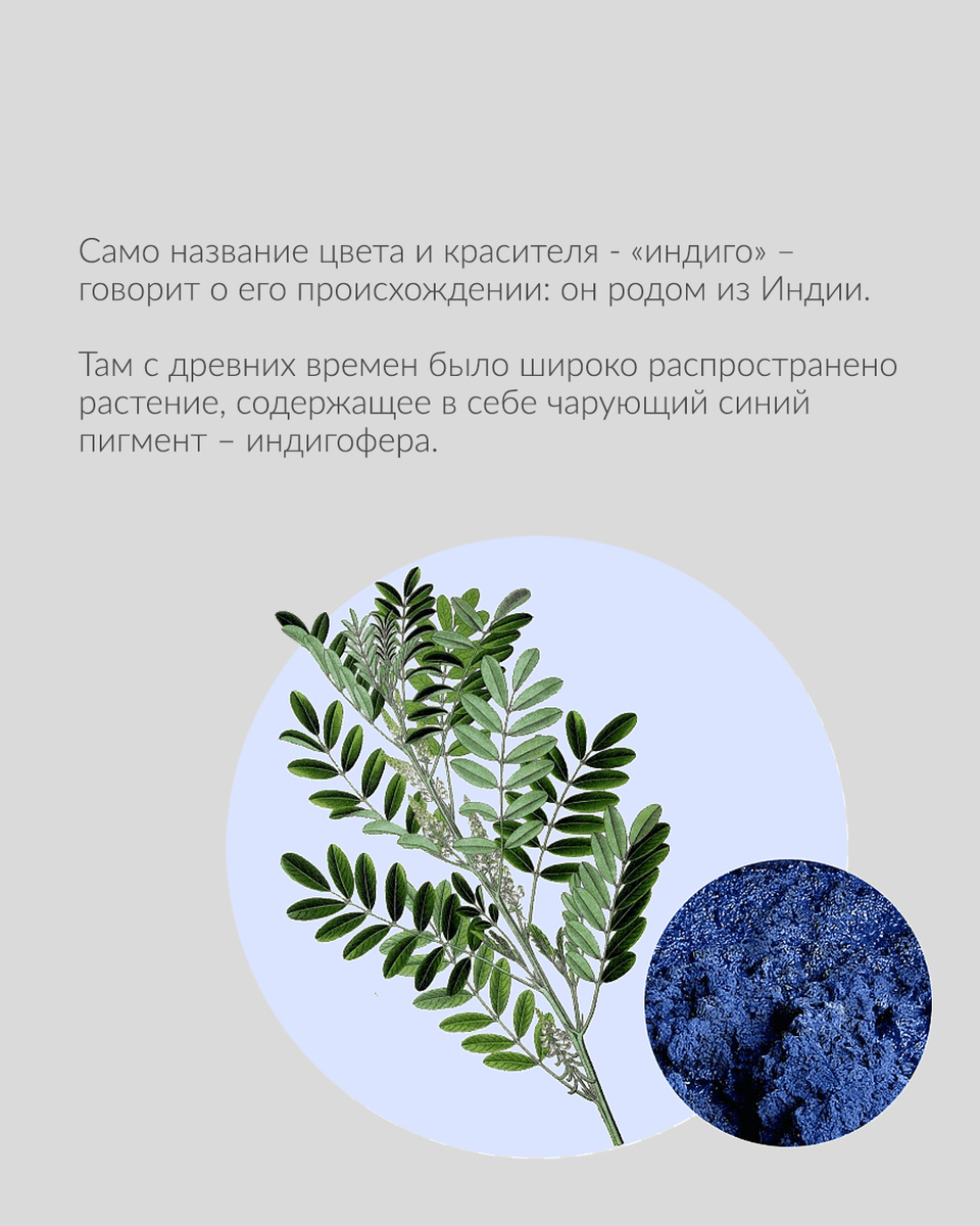 А сегодня расскажем вам о.. цвете! В то же время в Европе широко распространено было другое красящее растение, дающее синий пигмент - вайда. Но ткани, окрашенные вайдой, получались блеклыми и невыразительными. Поэтому в Европу морскими путями стали привозить именно индиго - доставляли его в форме тестообразной красящей массы, полученной из листьев индигоферы. Экзотическое происхождение пигмента делало его очень дорогим. Все, что привозилось с Востока, ценилось "на вес золота": драгоценности, специи и.. индиго! Колониальные войны не в последнюю очередь были развернуты ради плантаций, на которых выращивали редкие, недоступные европейцам растения - сахарный тростник и индигоферу. Трудились на плантациях рабы - местные жители захваченных земель. С изобретением лабораторного способа добычи яркого синего пигмента отпала необходимость и в содержании плантаций индигоферы. Одержимости богачей