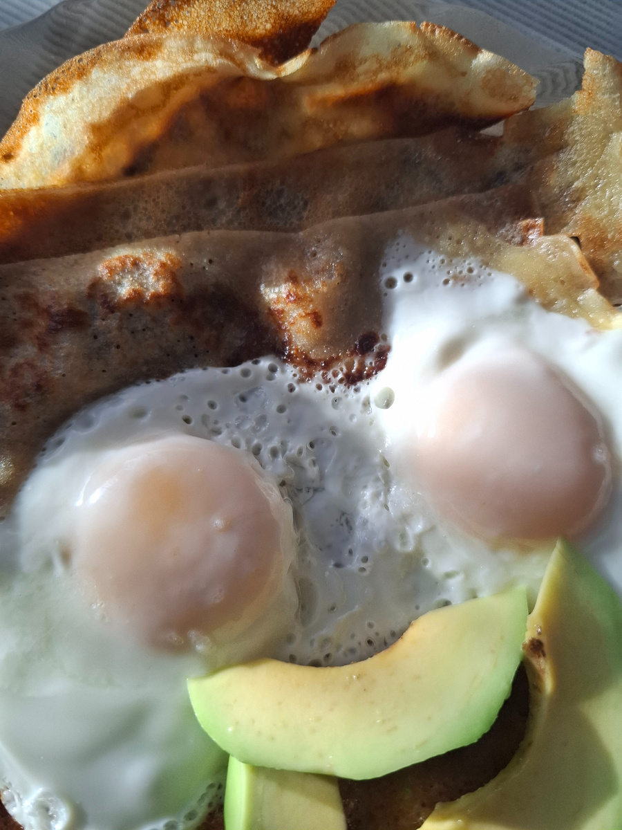 Так вкусненько в желток обмакнуть блин и закусить авокадо! Пробовали? Рекомендую!