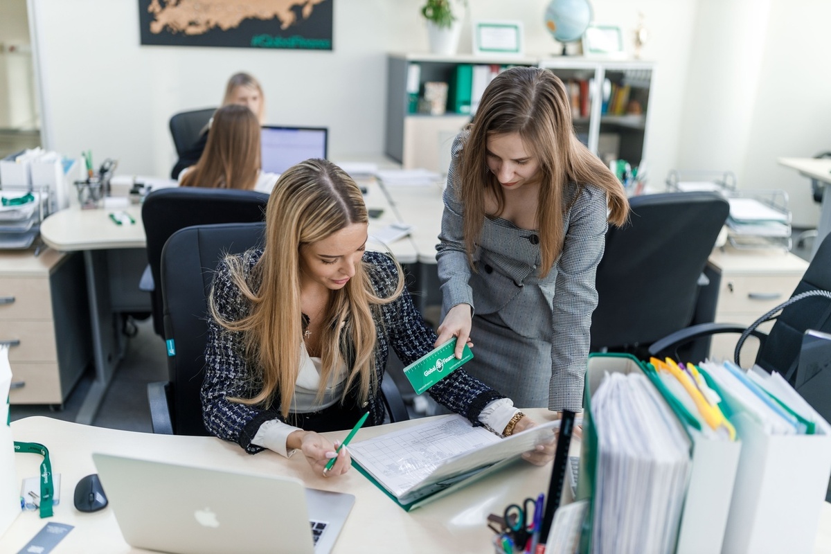 Каждый клиент находится на сопровождении группы, в которой есть ведущий специалист и рядовые сотрудники, контролирующие определенный участок. Первичная информация обрабатывается автоматически. Global Finance использует в своей работе облачные сервисы так, что клиенту необходим только устойчивый интернет. Бухгалтеры Global Finance контролируют правильность ввода данных, а также совершают ключевые операции. Нагрузка рассчитывается не из количества обслуживаемых клиентов, а из числа проводимых каждым сотрудником операций. Это не допускает перегрузок и профессионального выгорания каждого бухгалтера компании. Строго регламентировано и время операций: самая простая (проверка поступления средств на счета клиента) не должна превышать 5 минут, а самая сложная — внесение спецификации с иностранной номенклатурой — не более 28 минут.
