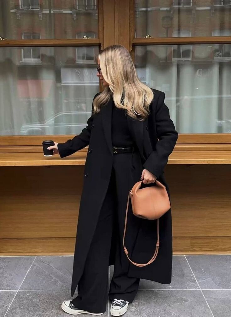 С классическим пальто отлично будут смотреться брюки-скейтеры или прямые классические брюки. Если вы предпочитаете юбки, выбирайте модели средней длины — миди или макси. В качестве верха идеально подойдут блузы или водолазки, которые добавят образу строгости и элегантности.