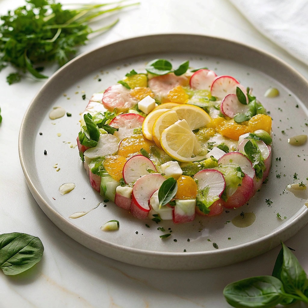 Тартар из редиса и авокадо с цитрусовым взрывом