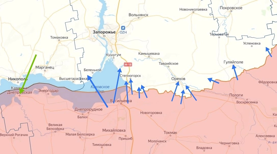 За прошлые сутки, с 25 на 26 февраля, правобережную часть Запорожской области обстреляли 499 раз. Удары пришлись на 12 населённых пунктов. Об этом рассказал начальник ЗОВА Иван Фёдоров. 203 артудара нанесли по Степногорску, Пятихаткам, Каменскому, Гуляйполю, Орехову, Чаривному, Новодаровке, Щербакам, Новоданиловке и Малой Токмачке. Последние три села накрыли 5 раз из РСЗО. Все эти территории, включая Червоноднепровку и Приморское, атаковали 280 БПЛА различной модификации. 11 авиабомб упали на Пятихатки, Каменское и Гуляйполе. Известно об одном пострадавшем человеке. Напомним, ранее Каменка-Днепровская попала под огонь ВСУ. Один из ударов пришелся по частному дому – повреждены постройки, пострадавших нет. Василий Карамелин