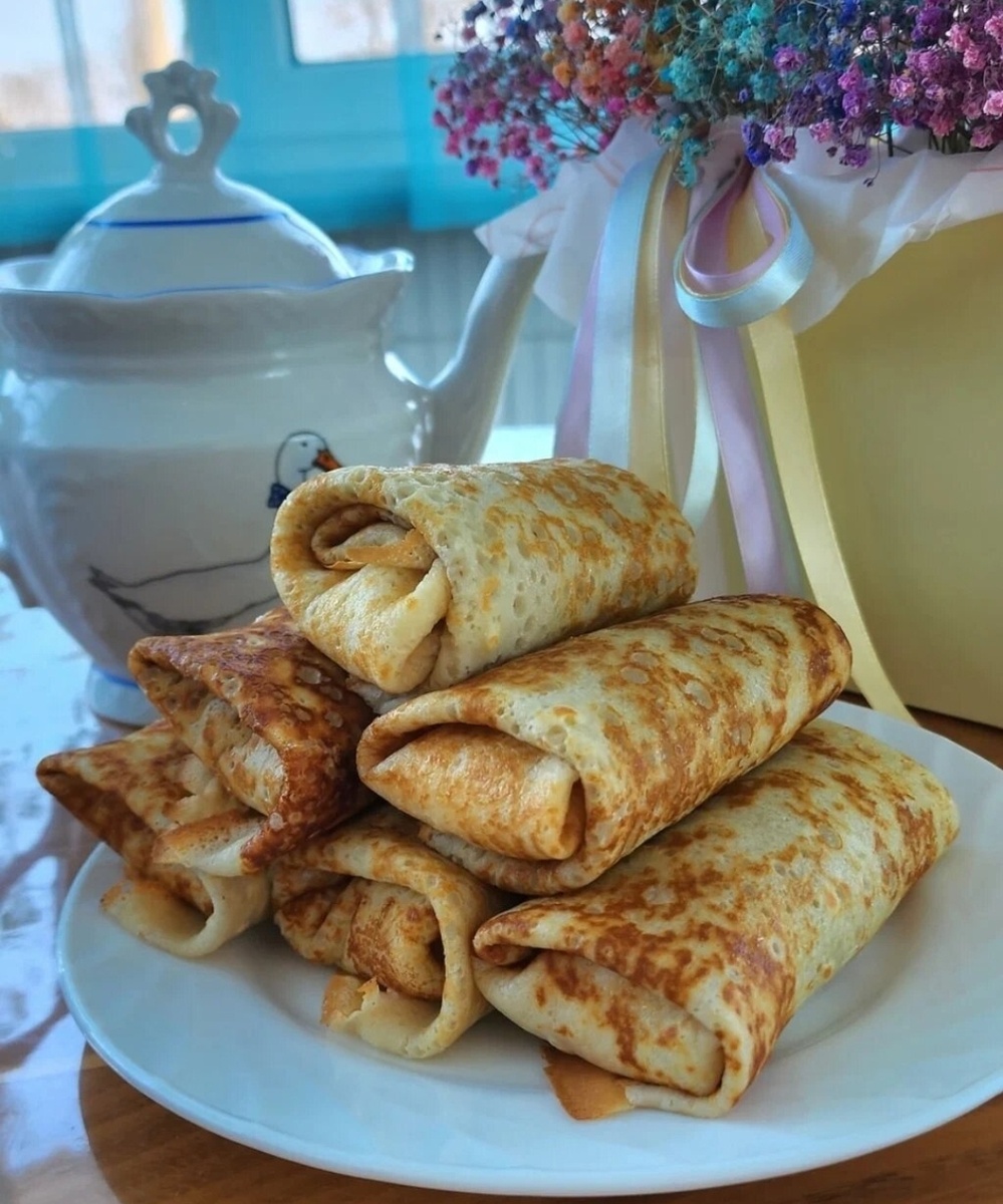 С Масленицей, дорогие мои читатели! 🎉 Как же я люблю это время года! Пахнет весной, солнце уже смотрит из-за облаков, а на столе стоят блины, которые мы готовим с семьей. Сегодня хочу поделиться с вами своим любимым рецептом блинов, который всегда получается отменным и, что немаловажно, нравится моим детям! ❤️ Для нашего блинового шедевра нам понадобятся простые ингредиенты: - Молоко – 1 стакан - Кефир – 1 стакан - Яйца – 4 шт. - Сахар – 100 гр. - Соль – 1 ч.л. - Изюм – 50 гр. - Разрыхлитель – 5 гр. - Растительное масло – 3 ст.л. - Творог – 1 упаковка - Сметана – 100 гр. - Сливочное масло – 100 гр. Перед тем как приступить к приготовлению, не забудьте, что все ингредиенты должны быть комнатной температуры. Это важно, чтобы тесто лучше смешалось, а блины получились более нежными. Теперь давайте готовить! 1. В глубокой миске взбиваем яйца с сахаром и солью. Делаем это венчиком до образования легкой пены. Это не только придаст тесту воздушность, но и наши блины будут более пышными.