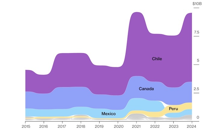 Дональд Трамп поручил Министерству торговли США изучить возможность введения пошлин на медь. Президент подписал соответствующий указ в Овальном кабинете в присутствии министра торговли Говарда Лутника, отметив «большие последствия» этого решения Какие страны экспортируют медь в США. Источник: Bloomberg Администрация объясняет эту инициативу вопросами национальной безопасности. По мнению чиновников, демпинг и избыточные производственные мощности на мировых рынках подорвали внутреннее производство меди в США, сделав оборонную промышленность зависимой от импорта. На фоне этого заявления фьючерсы на медь в Нью-Йорке выросли почти на 5% — максимальный внутридневной рост с мая прошлого года. Конкретные ставки пошлин пока не обсуждаются. Медь играет ключевую роль в современной экономике, особенно в электрификации. Аналитики прогнозируют рост цен в этом десятилетии из-за отставания предложения от спроса. Крупнейшим переработчиком меди остается Китай, на который приходится около 44% мирового пр