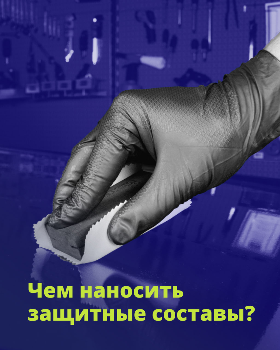 ⚡️ Аппликаторы: подходят для равномерного нанесения защитного состава. Позволяют контролировать количество наносимого продукта и избегать излишков. Аппликаторы изготавливаются из специальных материалов с учётом специфики покрытия и, как правило, идут в комплекте к защитному составу.