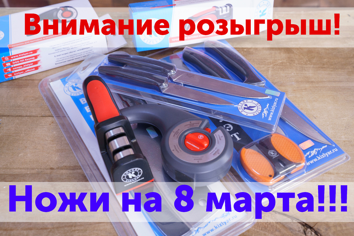 Внимание!!! Стартует конкурс приуроченный к 8 марта. На розыгрыше кухонные ножи. На первом месте: 1. Набор Веста. 2. Набор Дуэт. 3. Топорик вепрь. Вторые места: Киридаши. Третье место: Кухонные точилки. Условия как всегда просты. 1. Быть подписанным на наше сообщество во Вконтакте https://vk.com/kizlyarofficial