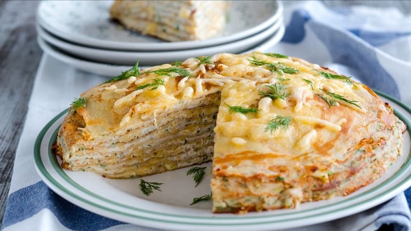 Курник — это традиционный русский пирог, который славится своим богатым вкусом и многослойной начинкой. Однако существует и более необычная версия этого блюда — курник с блинами. В таком варианте вместо классического теста используются тонкие блины, которые создают уникальную текстуру и делают пирог еще более нежным и сочным. Этот рецепт идеально подходит для тех, кто хочет удивить гостей или порадовать семью чем-то особенным. 1. Смешайте сметану и майонез. Добавьте измельченный чеснок (по желанию) и перемешайте. 1. Возьмите форму для выпечки и смажьте ее маслом. 2. Выложите на дно формы блин. Смажьте его соусом и выложите слой начинки. 3. Повторяйте слои: блин, соус, начинка. Последним слоем должен быть блин. 4. Верхний блин смажьте соусом и посыпьте тертым сыром (по желанию). 1. Разогрейте духовку до 180°C. 2. Выпекайте курник 10–15 минут до золотистой корочки. 3. Готовый пирог достаньте из духовки и дайте ему немного остыть перед подачей. Курник с блинами подают теплым.