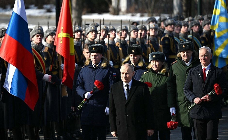 В День защитника Отечества Президент возложил венок к Могиле Неизвестного Солдата у Кремлёвской стены.