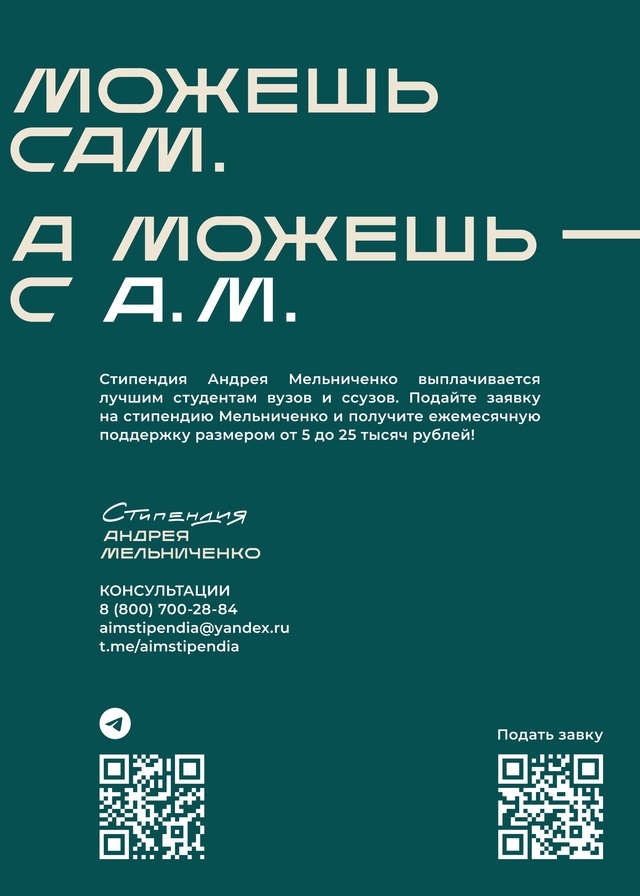 Студенты должны обучаться очно по техническим и инженерным специальностям или направлениям на втором курсе или старше. Подробные условия конкурса на сайте Стипендии (aimstipendia.ru/).