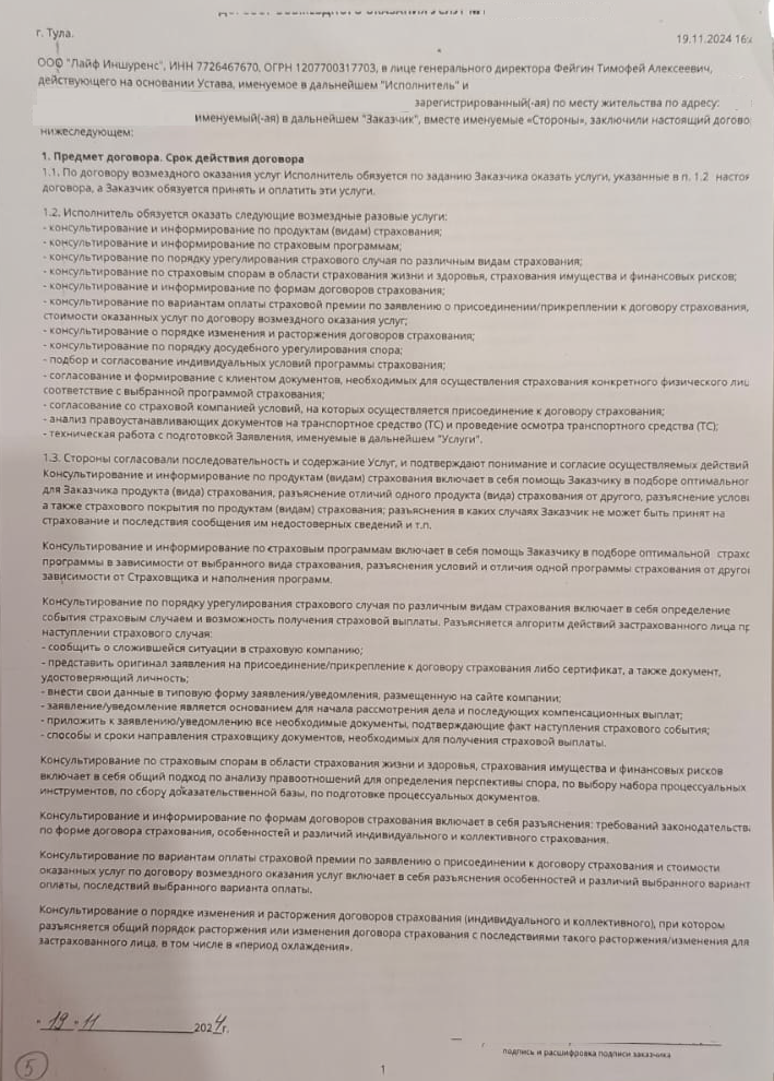 Если вы столкнулись с навязанными услугами от данной компании, этот пост будет полезен для вас! Недавно к нам обратился клиент, который заключил автокредит с ООО "Драйв Клик Банк". В процессе оформления кредита банковские специалисты передали ему на подпись договор возмездного оказания услуг с ООО "Лайф Иншуренс" на сумму 100 000 руб. Сумма включает в себя 94 814 руб. за консультационные услуги, связанные с основным договором, а также 5 186 руб. за страховку по программе “GAP” от ООО "Лайф Иншуренс" и АО "ОСК". Расторжение данного договора не повлияет на процентную ставку, поэтому клиент решил вернуть средства. Мы начали с первого шага, который рекомендуем в подобных случаях - подготовки досудебной претензии. Подготовленное заявление было направлено по юридическому адресу компании-исполнителя - ООО "Лайф Иншуренс" (ИНН 7726467670): 117105, г. Москва, Варшавское шоссе, д. 11. Компания получила нашу претензию и вернула всю сумму на счет клиента в течение 10 дней. ________________________