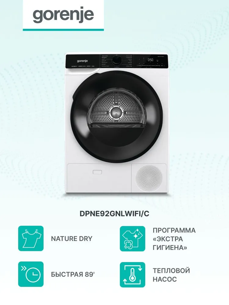 Сушильная машина Gorenje DPNE92GNLWIFI/C, 9 кг, конденсационный с тепловым насосом