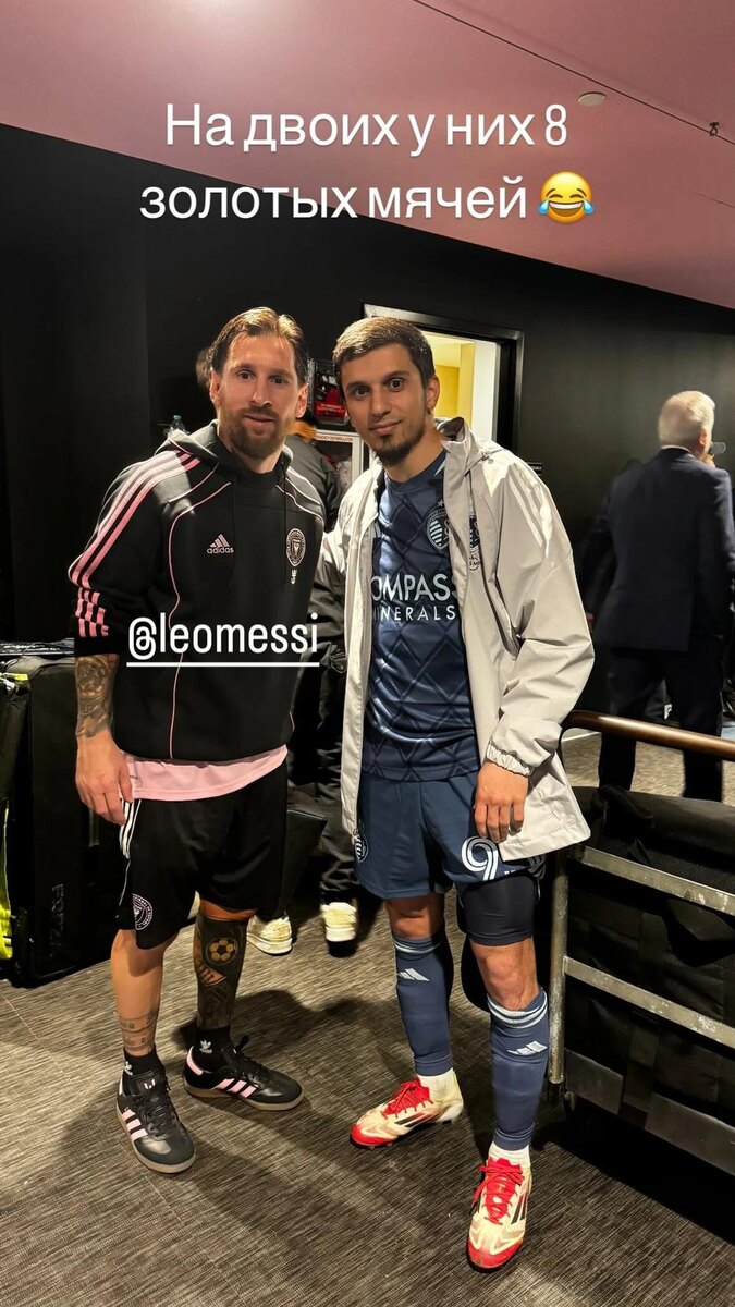 Российский форвард «Спортинг Канзас-Сити» Магомед-Шапи Сулейманов после ответного матча 1/16 финала Кубка чемпионов КОНКАКАФ против «Интер Майами» выложил в Instagram (принадлежит Meta, компания признана экстремистской и запрещена в России) совместное фото с лидером соперников Лионелем Месси.