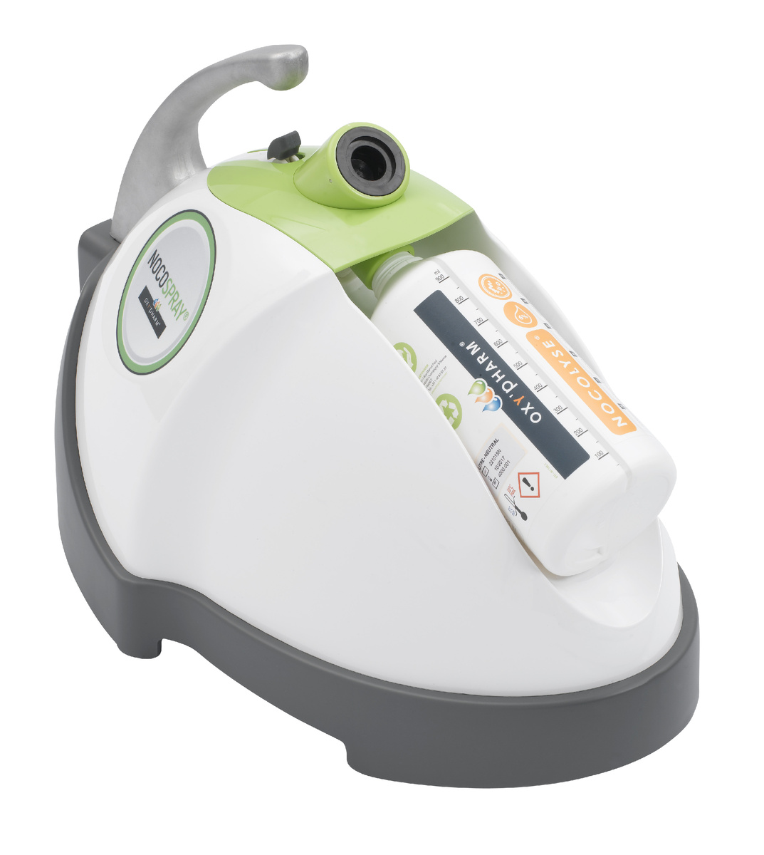 Nocospray обеспечивает распыление микрочастиц дезинфицирующей хлор-несодержащей жидкости Nocolyse по всему объёму обрабатываемого помещения.