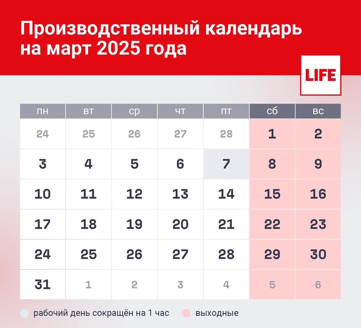 Производственный календарь март 2025.