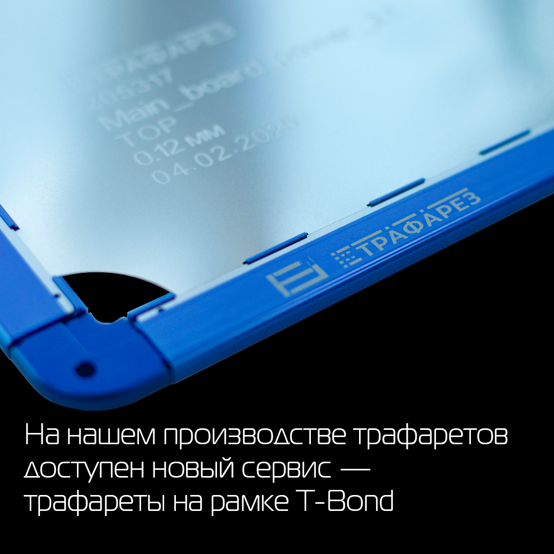 По вашим запросам мы продолжаем расширять спектр услуг в производстве трафаретов, внедряя новые решения для оптимизации технологических процессов. Теперь для удобства и повышения эффективности вашего производства доступен новый сервис — трафареты на рамке T-Bond. Это современное решение значительно упрощает работу монтажного производства, обеспечивая надежность, удобство в эксплуатации и ряд технологических преимуществ. Алюминиевый профиль рамки трафарета играет важную роль в обеспечении надежности и долговечности. Он принимает на себя нагрузку при натяжении трафарета, равномерно распределяя её по металлу. Это предотвращает повреждение и деформацию перфорации, продлевая срок службы трафарета и сохраняя его работоспособность в течение длительного времени. Рамка T-Bond подходит для следующих систем натяжения: Alfa Tetra, FG, Alfa tensoRED. Дополнительным преимуществом является частичное натяжение трафарета на собственной рамке, которое снижает вероятность повреждения во время эксплуатац