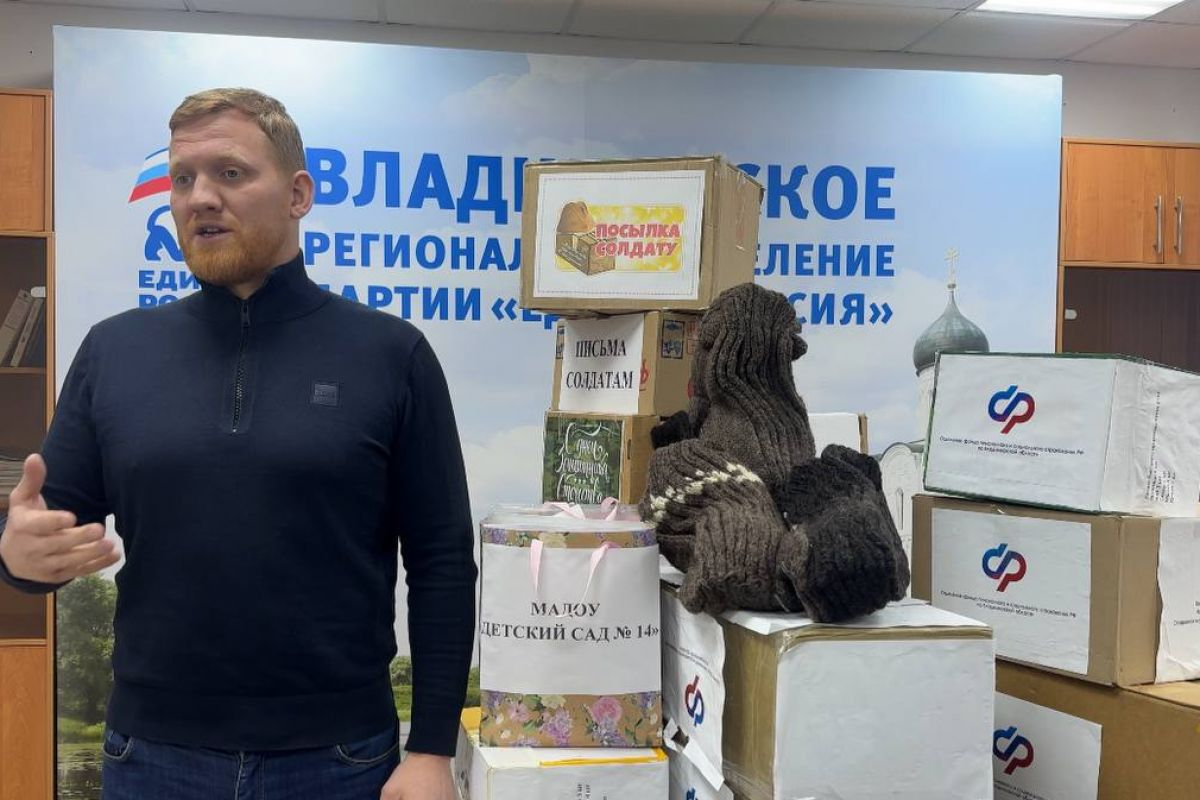 Акция «Тепло для героя» продолжается. Партия «Единая Россия» подготовила очередную партию гуманитарного груза для бойцов СВО. Она — особенная, праздничная. Бойцы получат не только необходимые вещи, но и приятные подарки ко Дню защитника Отечества. Вещи для гуманитарной миссии «Единая Россия» собирает постоянно — только отправится одна партия, начинается сбор следующей. Кабинеты в региональном отделении заставлены мешками и коробками. Участвуют местные отделения, предприниматели, компании и просто жители области. Недавно пенсионерка из Владимира принесла шерстяные носки — недаром акция называется «Тепло для героя». Каждый помогает как и чем может. Включаются целыми фирмами, организациями. Часть этой партии гумгруза собрали сотрудники Социального фонда. «Сегодня, в преддверии 23 февраля, мы передаем наши подарки для бойцов — это сладости, продукты быстрого приготовления и специальный сюрприз — письма от детей, написанные детьми наших сотрудников. Мне кажется, нашим воинам на передовой бу