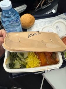 По версии пострадавших, на стойке регистрации восьмерых пассажиров, заказавших кошерное спецпитание, предупредили, что из-за сбоя им не смогут его предоставить. Однако после взлёта им таки принесли касалетки, на которых маркером было написано «KSML» – это стандартное обозначение для кошерного рациона.