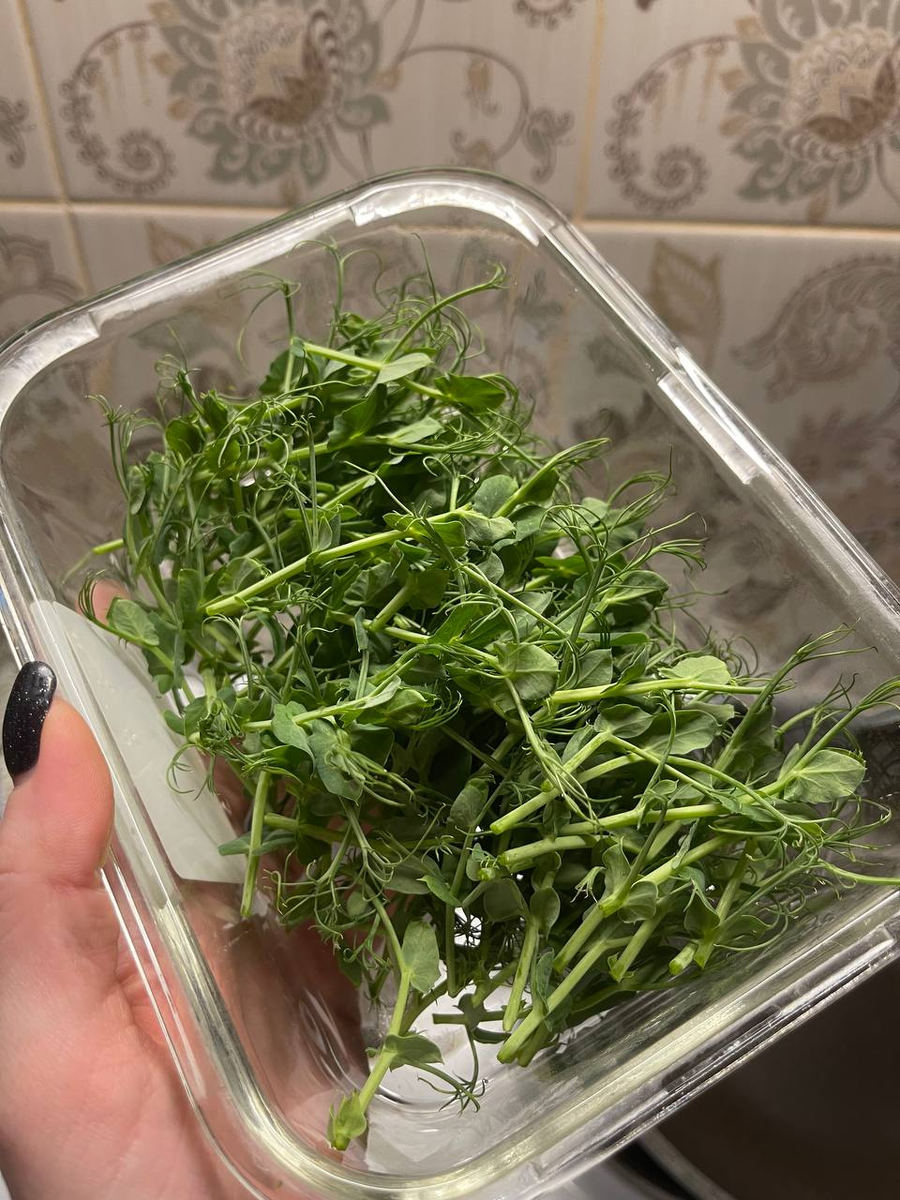 Осталось срезать микрозелень ножницами у основания стебля и наслаждаться) На вкус микрозелень горошка, точь-в-точь молодой вкусный горошек.