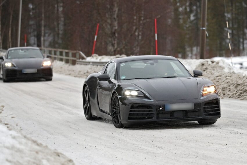 Где-то этим летом серия 718 с двигателем внутреннего сгорания будет снята с производства в пользу полностью электрических преемников. Фотографы-шпионы изначально заметили 718 Boxster Electric под камуфляжем, хотя Porsche в последнее время более интенсивно тестирует своего брата с кузовом купе. Последнее появление 718 Cayman Electric произошло в Швеции. Здесь можно увидеть прототипы с металлическим верхом, испытывающиеся вместе с 718 Boxster Electric. Внутренне именуемый 983, этот спортивный автомобиль с нулевым уровнем выбросов заимствует многие внешние стилистические черты у обновленного Taycan и серии 911. Мы также можем увидеть в этом авто немного концепции Mission R. Ожидается, что он будет представлен позже в этом году, 718 Boxster Electric разделяет эстетику средней части внутреннего сгорания 718 Boxster. Присмотритесь повнимательнее, и заметите немного более длинный автомобиль, который щеголяет стеклянной подъемной дверью, дополненной вертикальным третьим стоп-сигналом, похожим
