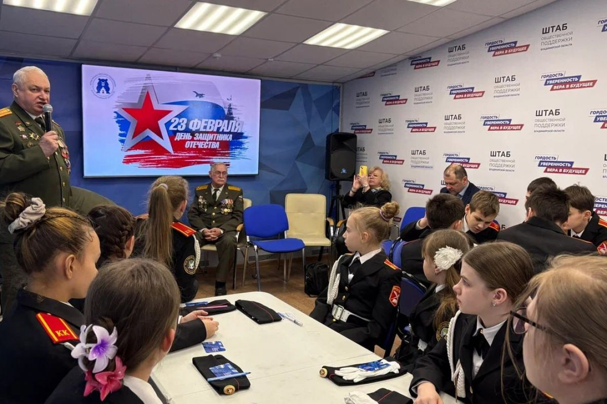 В канун Дня защитника Отечества ветераны боевых действий встретились с будущими воинами – кадетами 21 владимирской школы. Мероприятие прошло в Штабе общественной поддержки «Единой России». Как известно, Президент России Владимир Путин объявил 2025 год годом защитника Отечества. И уже привычные нам уроки мужества воспринимаются по-новому. Если раньше, до проведения специальной военной операции, мы не всегда задумывались, что общаемся с настоящими героями, то сегодня - это первая мысль, которая приходит в голову. Молодые ребята и взрослые мужчины, но совсем еще не старики – за их плечами настоящая война, бомбежки, ранения, госпитали. Юные слушатели — ученики кадетских классов 21 школы – слушали ветеранов затаив дыхание. Тем, кто сам прошел через все тяготы войны, есть что рассказать, чем поделиться с будущими защитники Отечества. Да и ребята, выбрав для себя кадетский класс, уже с детства понимают, что такое быть патриотом своей страны. Важно, что нынешний урок мужества организован в рам