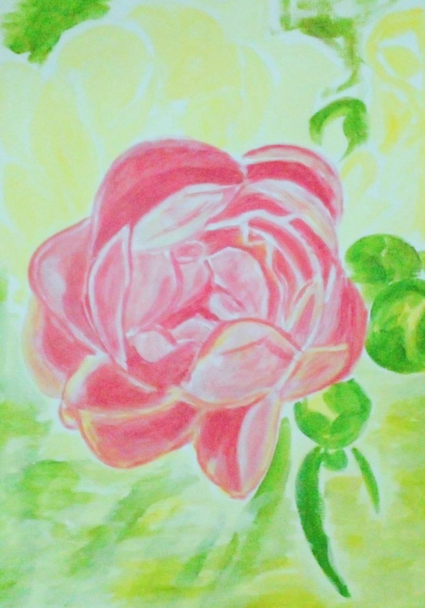 Розовый пион акварелью.