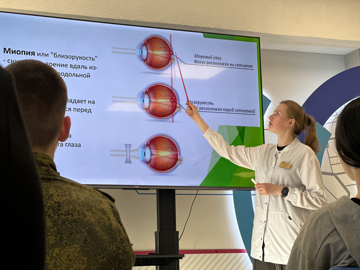 Спикером выступила врач-офтальмолог Анастасия Медведева. Слушателями лекции стали будущие абитуриенты военных учебных заведений, интересующиеся вопросами медицинского отбора и особенностями прохождения медкомиссии. В ходе встречи были рассмотрены требования к поступающим и представлены практические рекомендации по подготовке к поступлению.