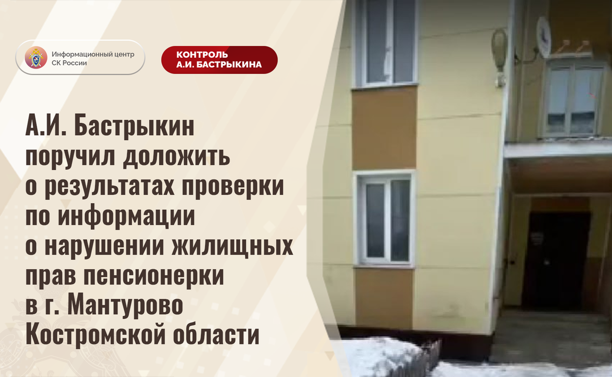А.И. Бастрыкин поручил доложить о результатах проверки по информации о нарушении жилищных прав пенсионерки в г. Мантурово