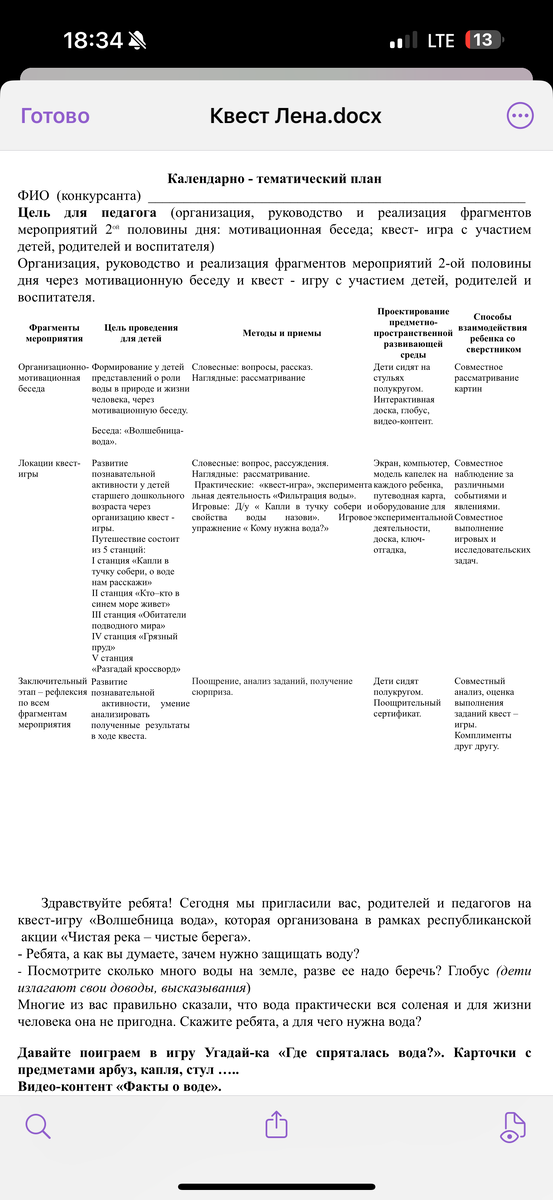 Цель для педагога (организация, руководство и реализация фрагментов мероприятий 2ОЙ половины дня: мотивационная беседа; квест- игра с участием детей, родителей и воспитателя)