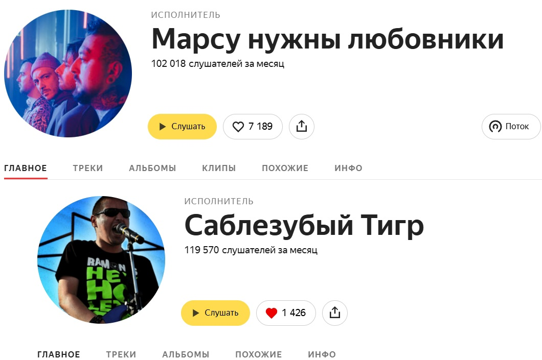Сегодня поговорим о замечательном коллективе под названием "Марсу Нужны Любовники". Казалось бы, а причём здесь Саблезубый Тигр? Дело в том, что один из её участников Иван Старцев является директором лейбла "Vечное Lето Records". Тогда, когда проект "СТ" реанимировался, необходимо было найти ресурс, через который осуществлять выпуск альбомов. Материал тогда был суров и страдал по качеству. Но тем не менее, мы не сдавались и подавали различные заявки на поиск лейбла. И вот в один прекрасный день откликнулся Иван Старцев, который оказался не только директором лейбла, но и замечательным музыкантом. Наши альбомы стали выходить на стриминговых платформах, постепенно набирая прослушивания. Иван Старцев поверил в нашу историю (пусть на тот момент она не была в сформированном виде). Это стало большим стимулом для создания новых треков. Наши альбомы стали выходить с завидной регулярностью. Всего этого не было, если бы И. Старцев не появился на нашем горизонте. Ну а теперь немного цифр. Каким-то