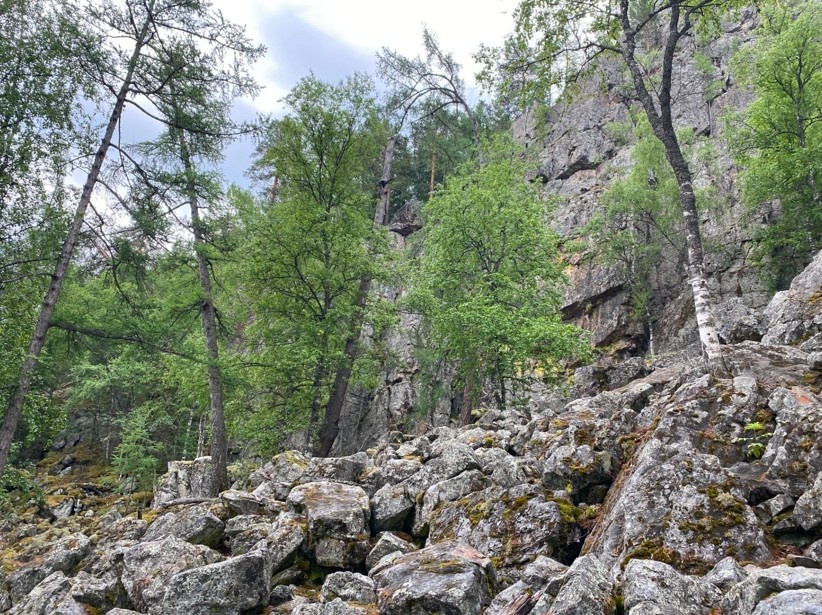 Ближе к вершине хребта (последние 300 м) расположена река из каменных россыпей (курумник). Подниматься по нему приходится под углом 45 градусов. После дождя добираться особенно трудно, валуны становятся скользкими. Примерно через полчаса подъема дорога упирается в отвесную скалу, тропа уходит направо. Заканчивается она у расщелины в каменной стене, где свисает веревка, с помощью нее можно забраться наверх.