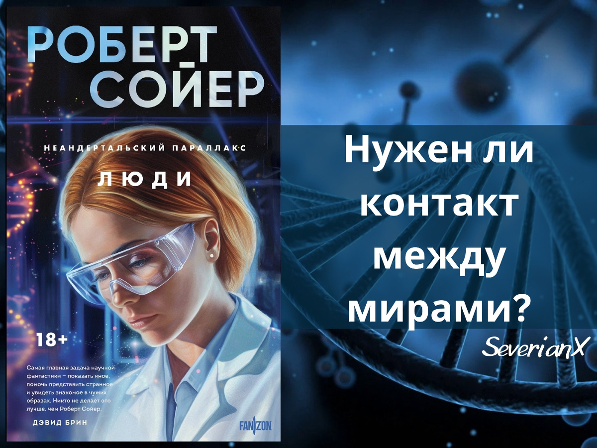 «Люди» – вторая часть трилогии Роберта Сойера «Неандертальский параллакс». В конце первого романа неандертальский физик Понтер Боддет возвращается в родной мир, но не может забыть о Мэри Воган. Вместе со своим партнёром, Адекором Халдом, он пытается уговорить власти создать стабильный портал в альтернативный мир, ведь это открывает огромные возможности для торговли и обмена знаниями. Не стоит отрицать, что обе цивилизации достигли многого, но в разных отраслях. Однако, все не так просто, т.к. тесному взаимодействию двух миров мешают значительные культурные отличия. Да и власти обеих сторон относятся крайне настороженно к этому контакту. Действие романа разворачивается, как и в «Гоминидах», одновременно в двух мирах, а главы чередуются. Правда здесь перевес все же приходится на главы о нашем мире, и действий здесь происходит больше. Подобное чередование помогает лучше увидеть все параллели и контрасты. Интересна и модель повествования: Понтер рассказывает о своих похождениях в мире люде