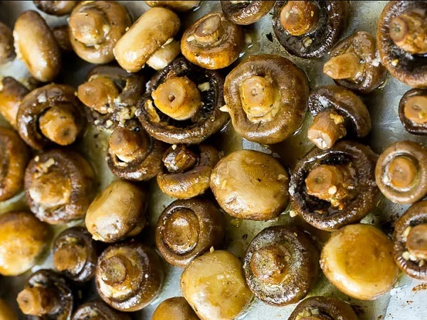 Этот рецепт начинается с целых грибов, вы можете выбрать любой сорт, который вам нравится. Хорошо использовать шампиньоны, они доступны круглый год, но вы также можете взять смесь лесных грибов. Грибы слегка маринуем, а затем отправляем в духовку для запекания.