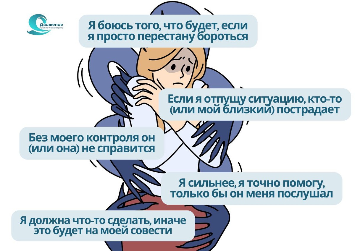 💔 «Я не могу отпустить ситуацию, потому что боюсь...» Если вы живёте с зависимым — вы знаете эту фразу. Вы произносили её, думали о ней. Вам страшно. Кажется, если отпустить контроль, он (или она) пропадет, разрушит свою жизнь, умрет. Кажется, что только держась за ситуацию крепче, вы можете что-то изменить. Но на самом деле... ❗️ Чем больше вы контролируете — тем сильнее теряете себя. Вам знакомы эти страхи? ☝🏻