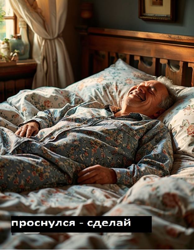 В предыдущей публикации я начал рассказывать про методики омоложения организма из книги Микулина Александра Александровича «Активное долголетие». Сегодня продолжу описывать рекомендации автора. Утренняя «волевая гимнастика»: Проснувшись, не вставая с кровати, в состоянии полного расслабления, не двигаясь, начинаем постепенно и последовательно, волевыми импульсами, напрягать мышцы от кончиков пальцев ног до верхнего пояса тела. Заканчиваем мышцами кончиков пальцев рук. Как бы поигрывая мускулами. И так несколько (3-5) раз, соблюдая правильное дыхание, 5 сокращений мышц - вдох – 3 секунды – выдох. Александр Александрович назвал это упражнение «волевой гимнастикой». Утренняя дыхательная гимнастика: Отдельно автор уделил внимание дыханию: нужно сделать глубокий вдох, во всю грудную клетку. Живот, усилием диафрагмы, надуть и задержать дыхание на 4 секунды. Выдох сделать, несколькими маленькими порциями, с усилием проталкивая воздух через сомкнутые зубы. Упражнение производить в тече