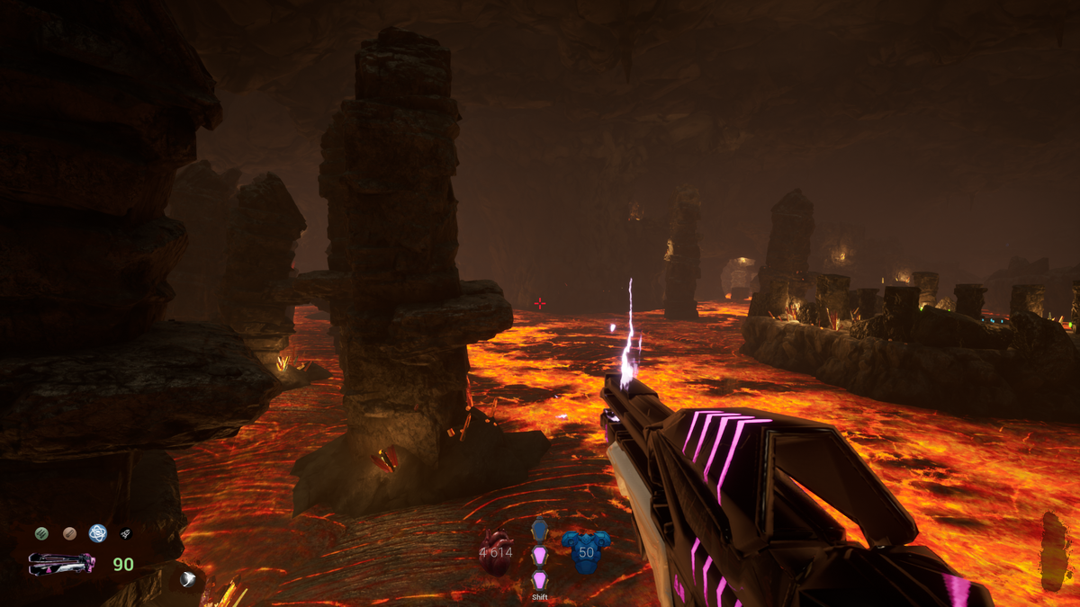 В связи с участием игры MeatFest, о которой я уже писал пару раз, на фестивале демоверсий Играм Быть в Steam, самое время потестить новый контент. Мне удалось попробовать новую локацию, лавовую пещеру, и теперь в игре есть еще и босс, который и натолкнул меня на ассоциацию в заголовке. На этом уровне уже явственно ощущается необходимость прокачки персонажа. Пробуя играть пустым персонажем (потому что я сразу загрузился с этого уровня), я понял, что есть большие проблемы с платформингом. Без прокачанного прыжка здешние пропасти не преодолеть! Появились новые враги - какие-то человеко-подобные слоны, стреляющие огромным световым лучом. Производят внушительное впечатление, но не очень живучие, как ни странно. У локации есть небольшие проблемы с освещением, местами темновато (прямо как в демке Gothic 1 Remake), но это разработчик обещал поправить. В финале меня ждал босс и это какая-то сталагмическая (или сталактическая) ящерка. Выглядит симпатично. Вызвала ассоциации с миром усатого водоп